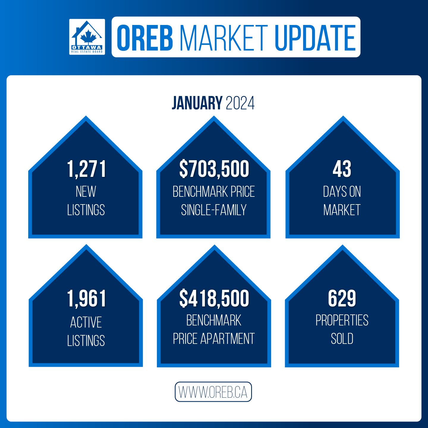 The Ottawa Real Estate Board (OREB) has released its latest market update for January 2024. Here's a summary of the key findings:
